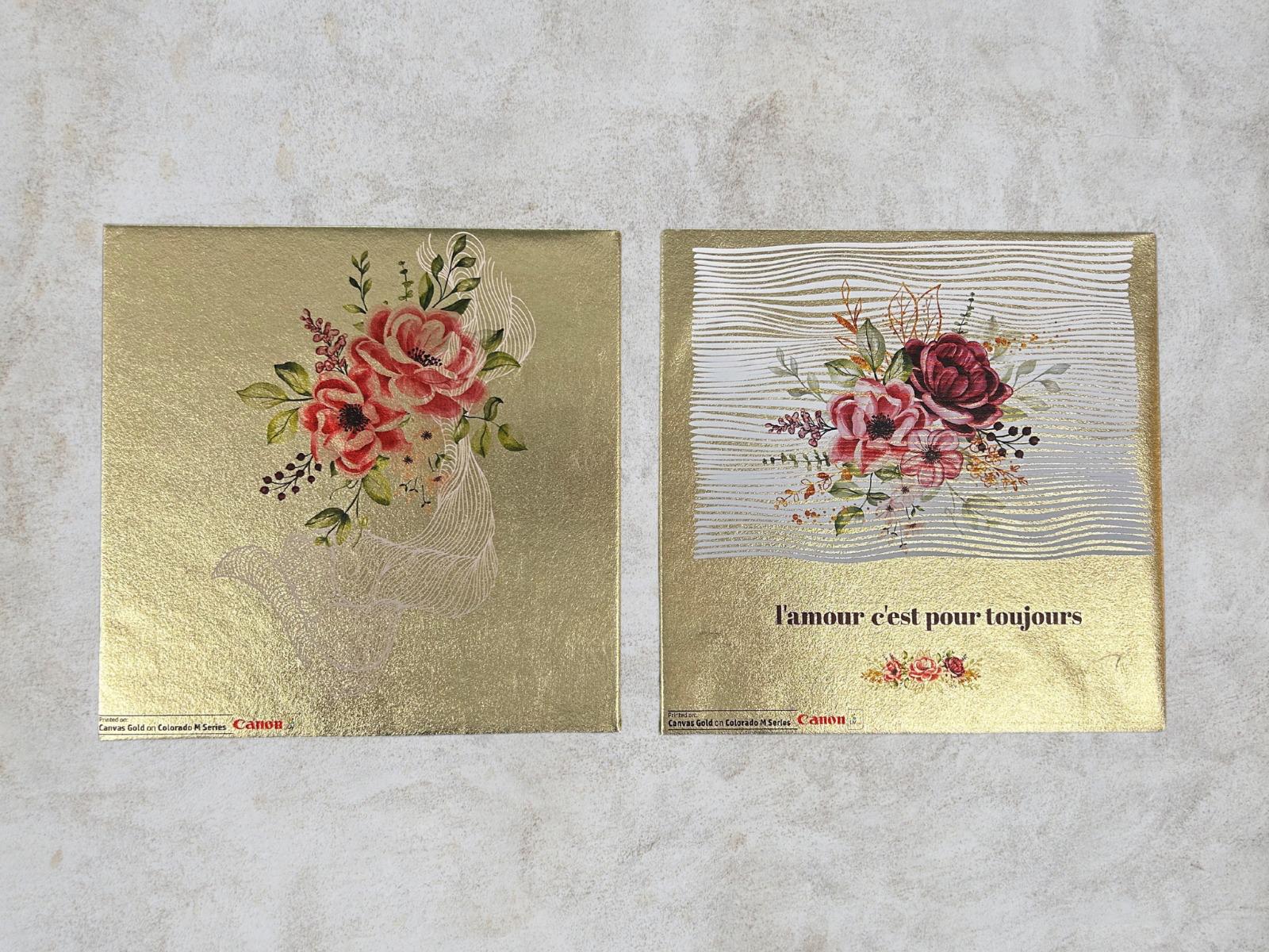 Pentru a obține rezultate optime pe astfel de materiale (aurii, argintii, colorate) este esențial să utilizezi o imprimantă cu cerneală albă. Cerneala albă joacă un rol crucial, asigurând păstrarea intensității și fidelității culorilor. De exemplu, dacă tipărești un roșu pe un canvas auriu fără un strat de alb aplicat în spate, nuanța de roșu va fi influențată de baza aurie, pierzând din intensitate. Același lucru se aplică pentru un negru profund, care devine mai puțin intens fără suport alb.
