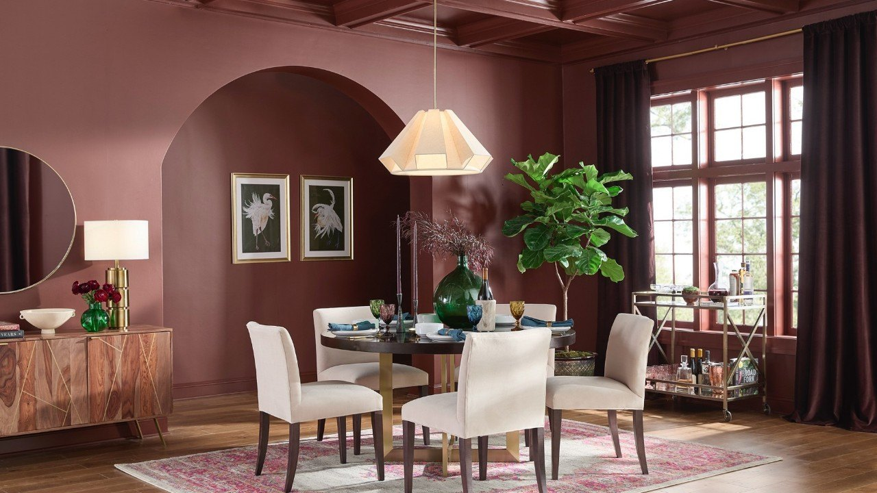 Glidden propune pentru 2026 nuanța Warm Mahogany, un maro bogat, intens, inspirat de textura și căldura lemnului masiv. Este o culoare profundă, matură și spectaculoasă, potrivită pentru spații care își doresc impact vizual imediat și un aer de rafinament clasic reinterpretat modern.