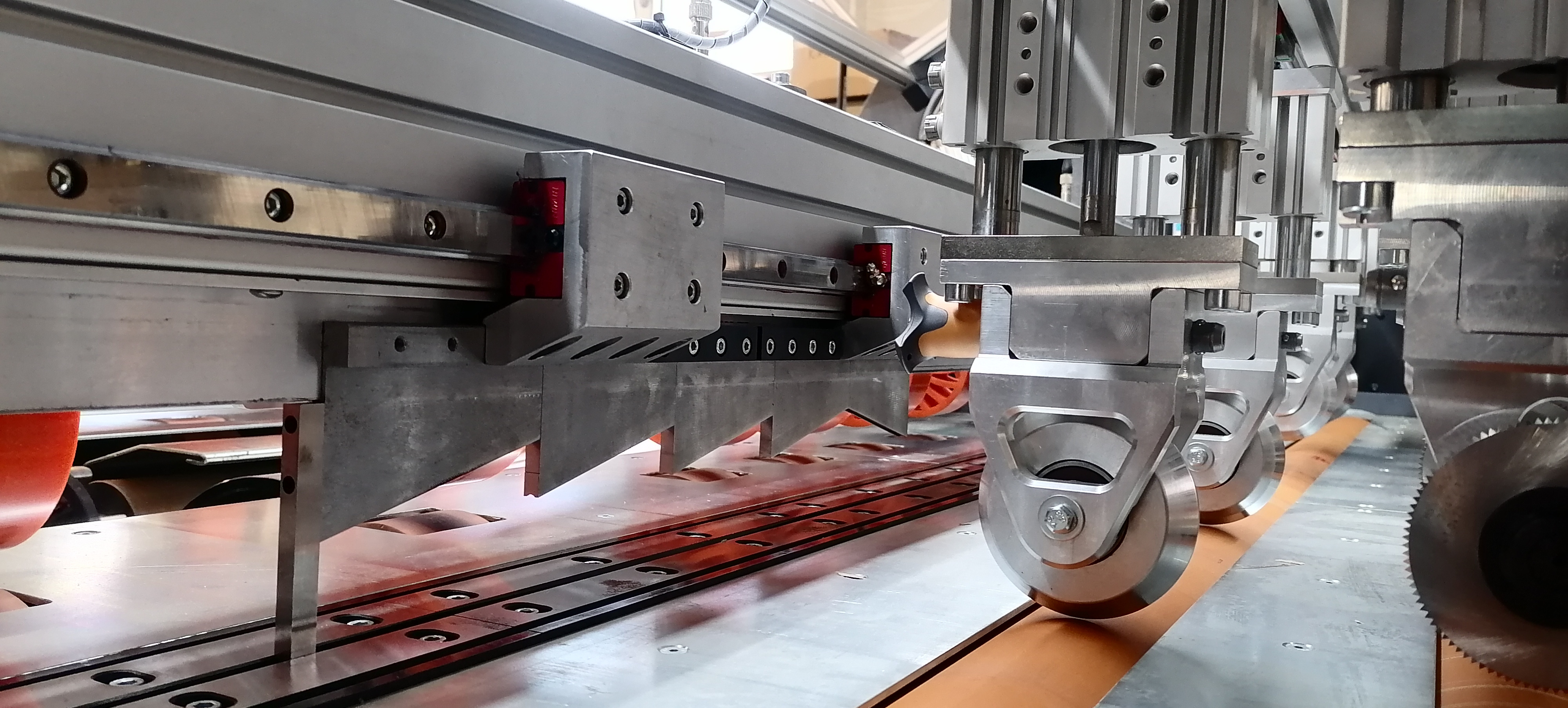 Lamele circulare taie cartonului pe lungime. La fel ca unitațile de tăiere transversală și biguire longitudinală, această unitate poate efectua lucrări selectiv, oriunde pe lungimea colii de carton ondulat. Unitatea este utilizată la producerea standardelor FEFCO 0204, FEFCO 0403, a clapelor de lipire sau la reformatarea cartonului ondulat. De asemenea, în combinație cu cuțitul de tăiere transverală, pot fi tăiate ferestre de vizitare și forme pătrate/dreptunghiulare.