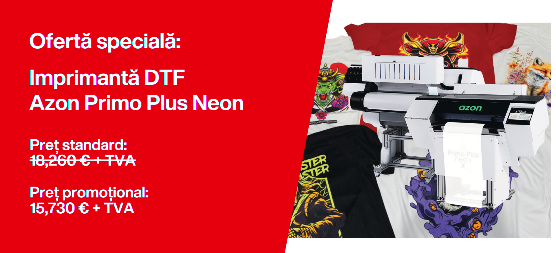 Imprimanta Azon Primo + Neon pentru tricouri personalizate, la pret special pana pe 31 decembrie!