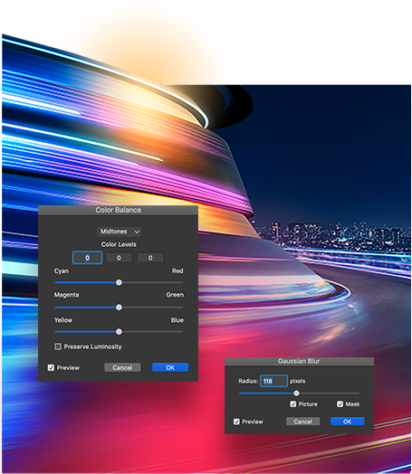 Grafică și IlustrațiiCreați ilustrații superbe, proiectați amestecuri de culori cu degradeuri multicolore, controlați canalele de culoare și editați imaginile într-o formă nedistructivă care vă vă permite să vă îmbogățiți creativitatea. |